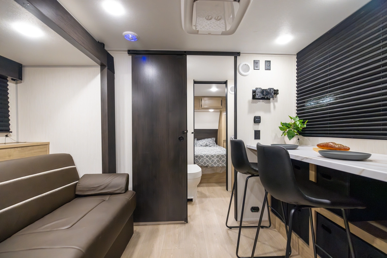 • Blackout Glass, Safety Slam, Friction Hinge Entry Door with Window and Shade Prep (N/A on LP models)