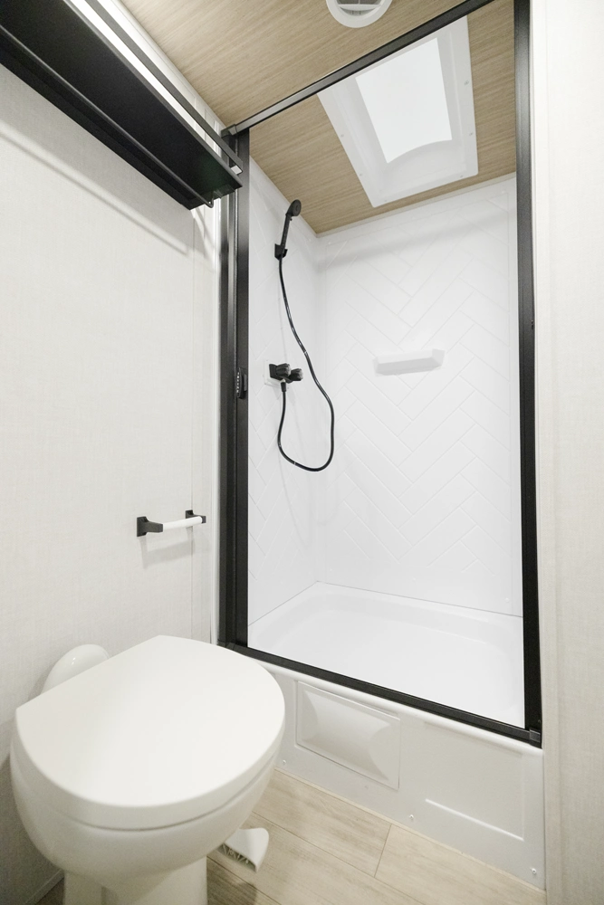 • Spacious Shower with Skylight for Added Height