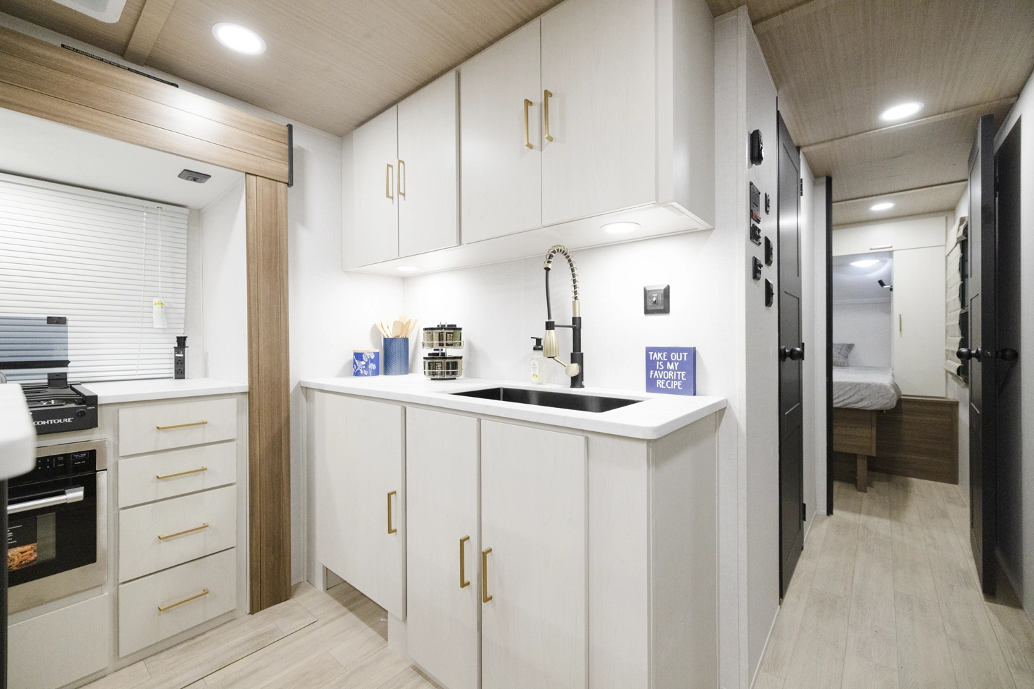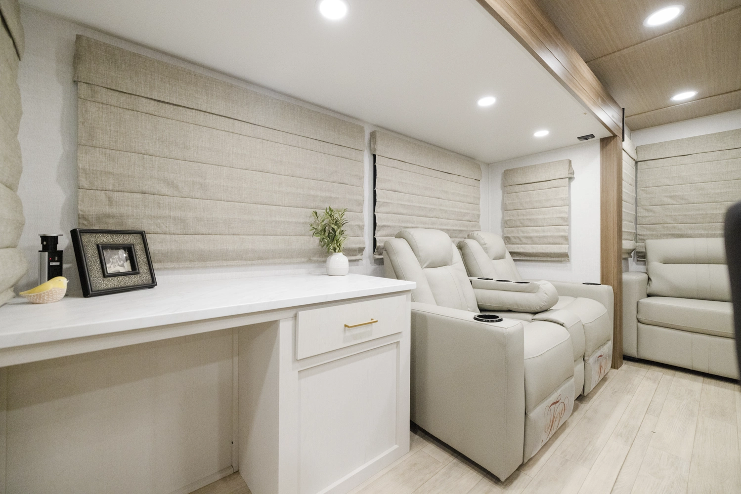 • True Flush Floor Slideouts with Fabric-Backed Shaw Linoleum